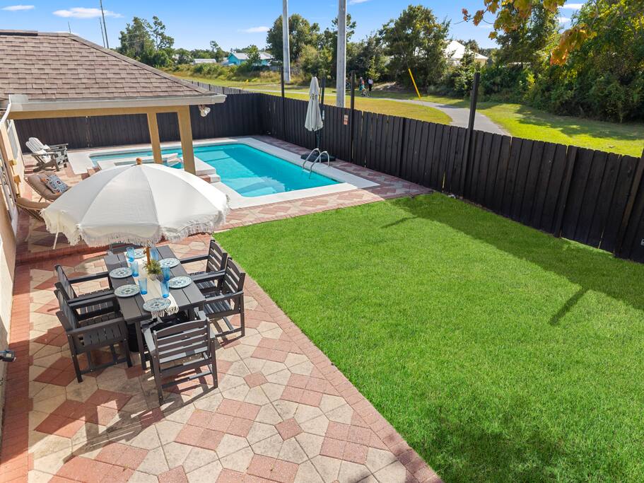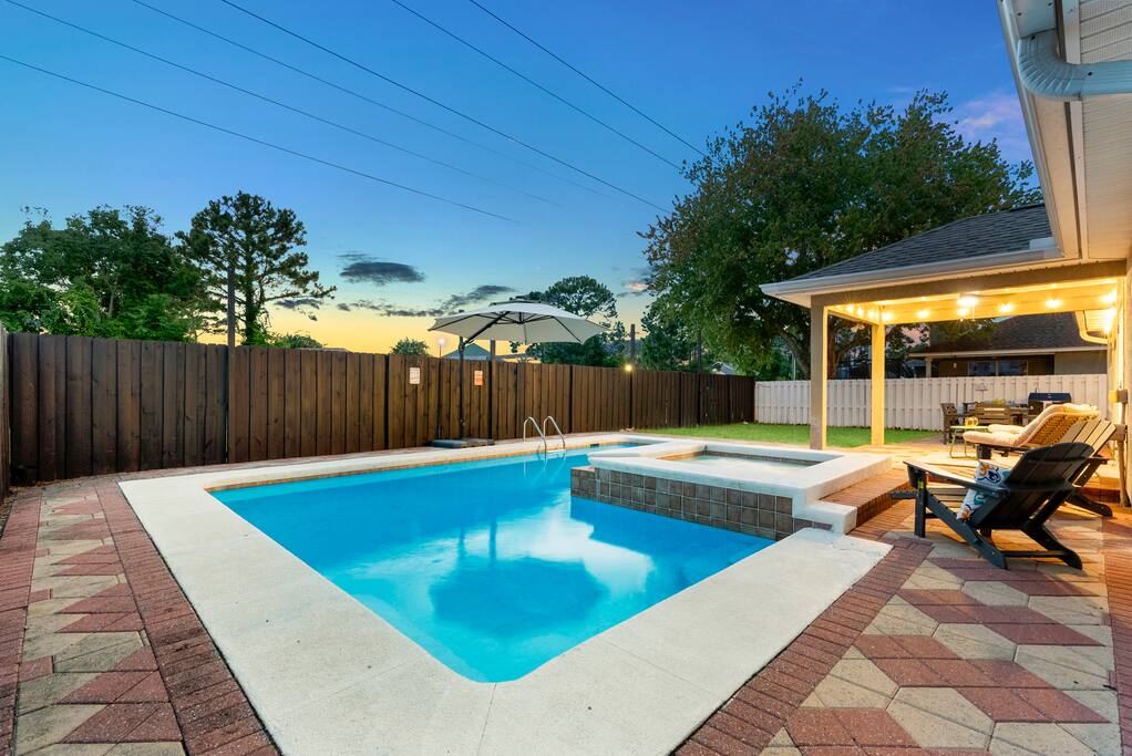 📌 Quick Facts to Know: • Minimum booking age: 25; exception can be made in certain situations – reach out 😊 • Pool and spa can be heated to 90 F for a small additional fee during cooler months (Oct–Mar). They share a single heating system, so the spa does not heat independently - please don’t expect a hotter soak than the pool. • Free parking — driveway & street • No smoking 🚭, no wild parties 🎉, small events only coordinated with the host • Only starter supplies provided • Maintenance team visits pool & yard weekly (even paradise needs upkeep) 🎮 Amenities to Keep You Smiling: • Game room: pool, air hockey, ping pong, foosball, darts (magnetic), board games and more! • Outdoor fun: basketball, cornhole, spikeball • Beach gear: chairs, wagon, and good vibes • Kiddie gear: pack and play, highchair, dinnerware • Fully equipped kitchen — cook or pretend to • High-speed WiFi 🚀 🗺️ Nearby Fun Spots: • 🌊 7-min drive to Gulf of Mexico beaches • 🏝️ Close to Shell Island & St. Andrews Park • 🛒 Groceries within 5 min (Publix & Winn-Dixie) • 🎢 Near Pier Park, Shipwreck Island Waterpark, and Publix Sports Complex • 🦜 Zoo & Botanical Conservatory in reach 🚫 What’s Not Allowed (No Exceptions): • No Parties or Events – Keep it chill, no wild gatherings (max occupancy 12 people) • No Loud Noise – Respect neighbors and quiet hours • No Smoking Indoors – Step outside and dispose properly • No Adjusting Pool/Hot Tub Equipment – Leave it to the pros ⚙️Equipment Notice We perform regular maintenance on all major systems and amenities (including the AC, pool heater, pool pump, etc.) to keep everything in good working order. However, we cannot guarantee the continuous or flawless operation of any mechanical equipment. Unexpected failures can occur, and some issues are beyond our ability to predict. If something does go wrong, we’ll respond promptly and do our best to resolve it ASAP. Your beach bliss is just a booking away. Bring the sunscreen, leave the stress! 😎🌴✨